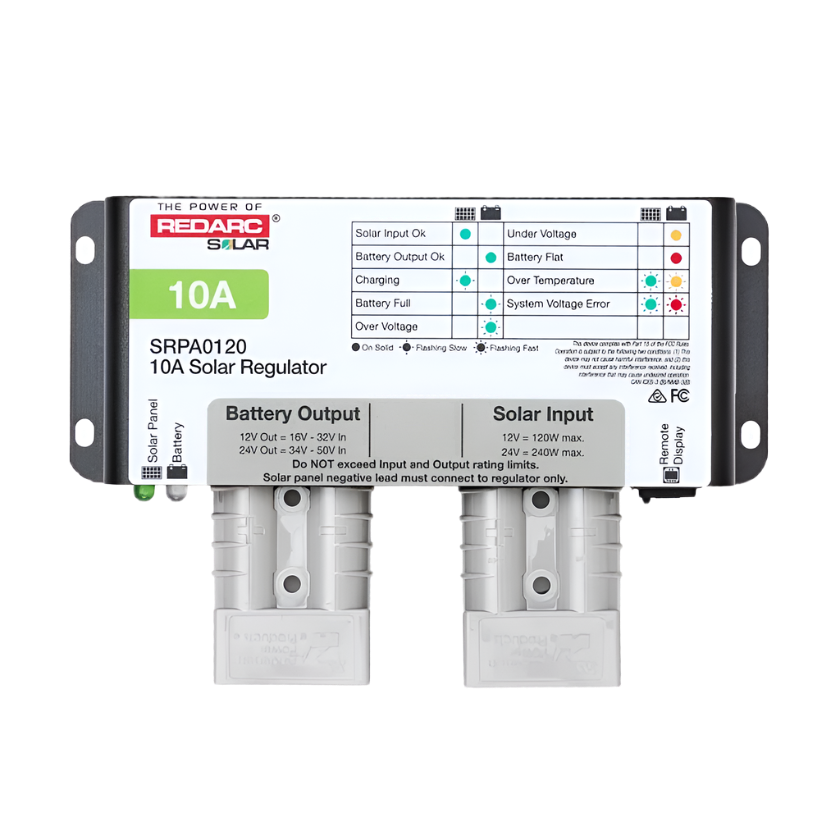 REDARC’S newly designed 10 Amp Solar Regulator comes with the Anderson™ SB™50 connectors and works our monocrystalline portable solar panel and solar blanket range. REDARC’s 10 Amp Solar Regulator acts as the go between to transfer power generated from the panels to the battery.