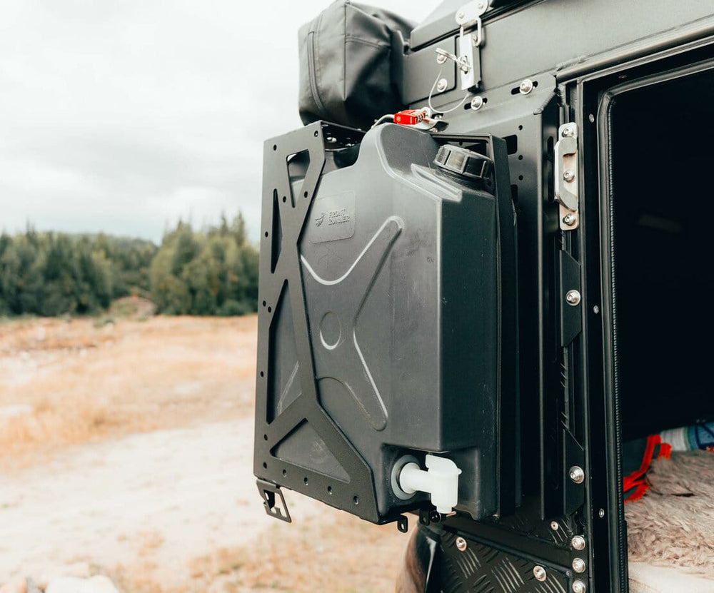 The easy to install Jerry can holder is a must for all overlanders. Although you may have long a range tank installed, having a separate can is handy. You just never know when you may be caught in a situation where you need that can of extra fuel. Also can be used for some extra water.