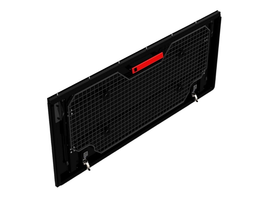 The Canopy Camper Side Door Grid is designed to fit on the inside of the Canopy Camper side doors. This easy install will allow you to mount your selected overland gear to the grid inside the cupboard making your gear easily accessible.