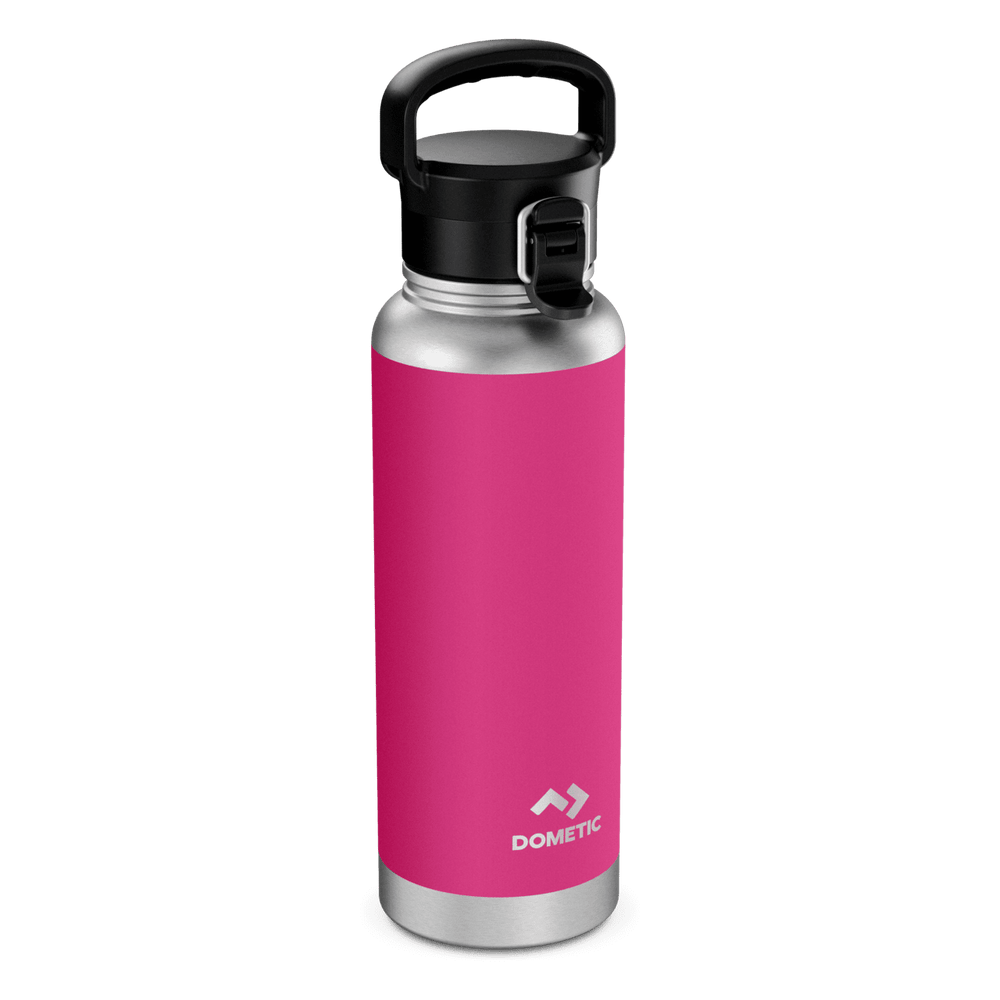 This 1.2-litre, double-walled stainless steel bottle holds enough cold or hot drinks for a larger crew. You can fill cups and glasses, or drink directly from the bottle. The functional cap has a built-in sturdy handle for convenient carrying and a stainless steel locking clip for added safety. Optional add-on caps widen the scope of applications.