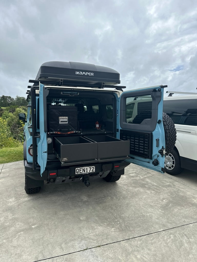 These drawers have multiple orientations, from full with toppers with hinged access panels to a fully integrated 12v power systems all tucked nicely behind the drawer set.