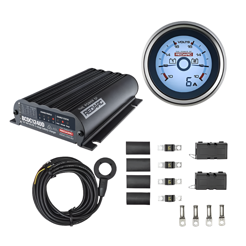 - A 40amp DC to DC battery charger (BCDC1240D) to connect and charge your batteries