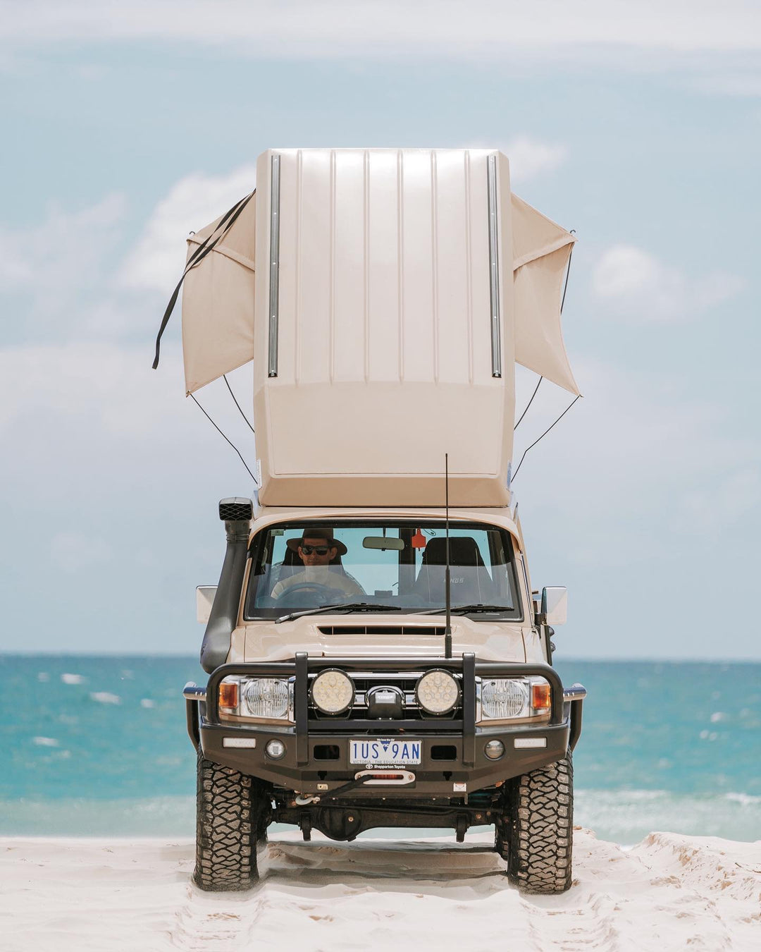 Our 75/78 Series roof conversion adds a mere 52mm of height to the vehicle and you get to keep your rear seats! The roof also tilts to 43º to maximise headspace inside the tent.