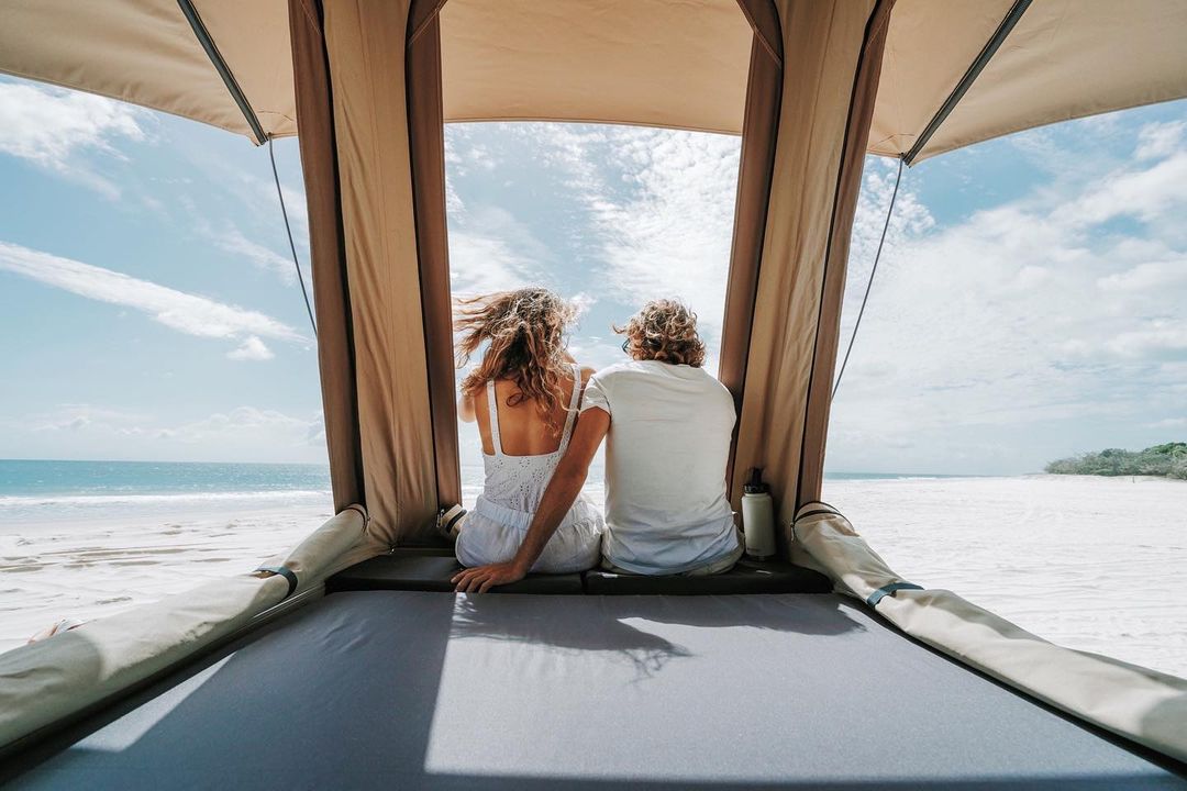 Exceptional Headspace: The roof lifts to 43º so it is designed for you to sleep with your head up the hinge end so you not only wake up to a view, but you simply slide down the bed to exit. This is instead of trying to spin around on the spot, and as such, interfere with your partner. The conversion has over 1850mm of headspace, just inside the tent! You’ll no longer hit your head when sitting up in bed, and you can change your clothes upstairs without needing to push the bed up to change downstairs.